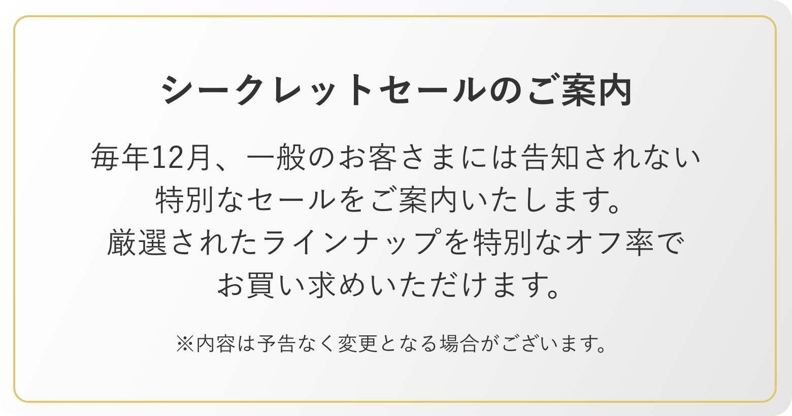 ランクの更新日は毎年 4月10日(ご購入金総額 集計期間は毎年4月1日〜翌年3月31日まで)です。