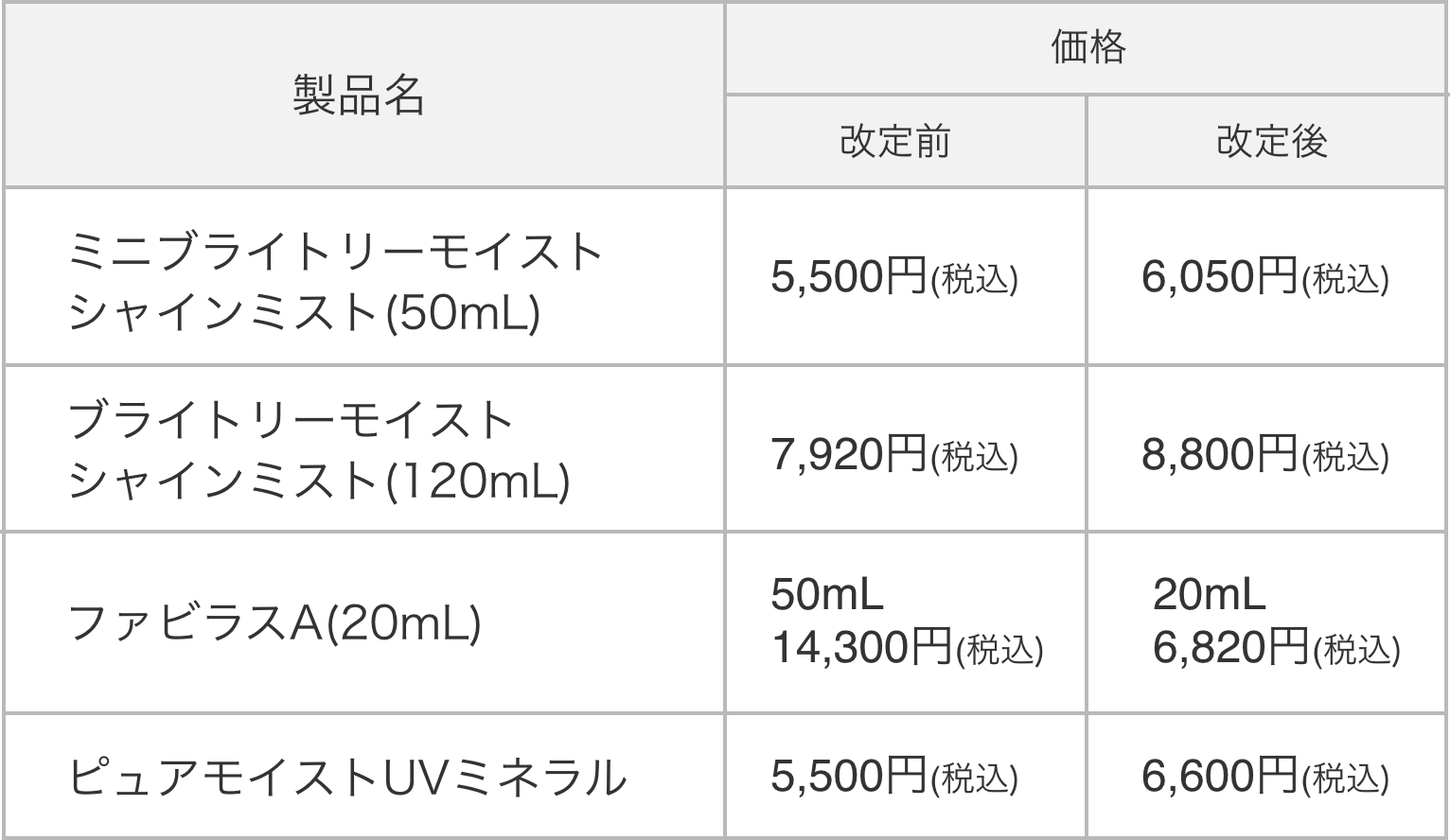 この度、昨今の原料費等の価格高騰を受け、誠に不本意ながら「モイストハイドレートミスト120mL」の価格を改定させていただくことになりました。