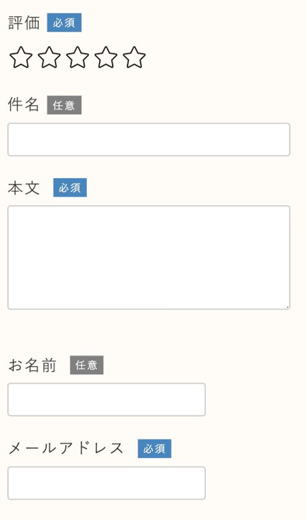 ② 評価、本文、メールアドレスを記載。お名前、ニックネームもよろしければぜひご記載ください!※ 会員登録しているメールアドレスでのご入力をお願いいたします。