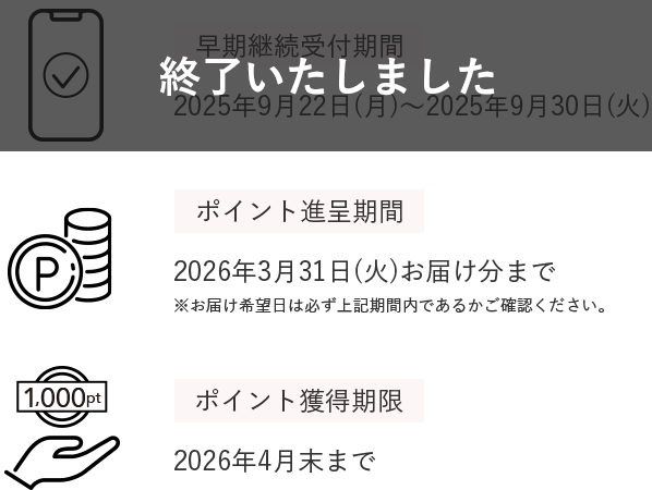 9月30日(火)までに継続のお申し込みをいただくと
