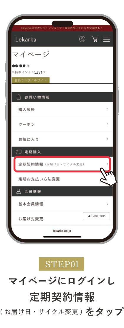 A. 定期ご注文の変更・スキップをご希望の場合は、お届け予定日の8日前までマイページからのご変更が可能です。