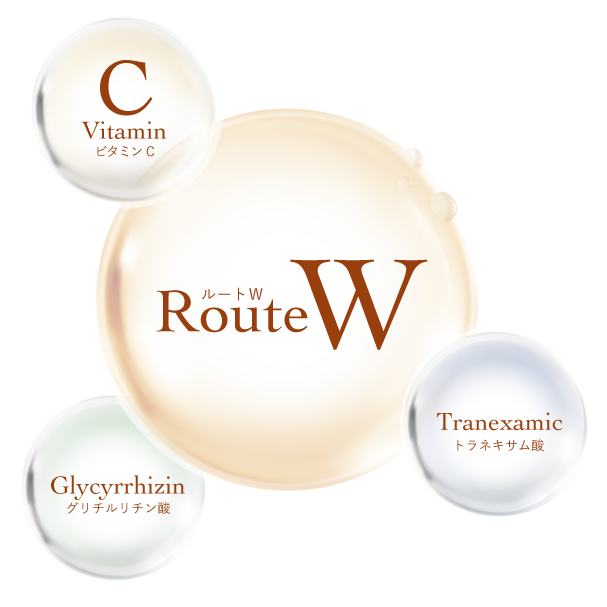 また、このルートW®は単体でも肌荒れ防止作用などを発揮しますが、一番の強みはトラネキサム酸やグリチルリチン酸そしてビタミンCなど美容主成分と合わせて配合した際の相乗効果にあります。例えばトラネキサム酸は配合できる最大濃度には上限がありますが、ルートW®を合わせて配合することで独自のアプローチによって従来より優れたブライトニング効果を発揮します。このように美容主成分とのシナジー効果で、肌が本来もつリズムに寄り添い、澄んだ印象へと導くようなルートを描いていきます。