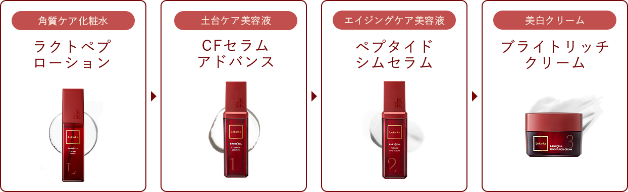 主要美容成分とのシナジー効果で、肌が本来もつリズムに寄り添い、澄んだ印象へと導くような道すじ(ルート)を描いていきます。