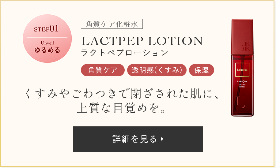 乳酸やセンチフォリアバラ花水(ローズウォーター)の配合を変えることで従来品より保湿力が12%アップしています。とろみのあるテクスチャーがすっと肌に馴染みながらも、ぴたっとうるおいをキープしてくれます。